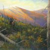 Sentinel – This painting is loosely based on an encounter I had with a wild stallion in the desert of northern Utah while I was hunting. Hiking up into a canyon I had a strange feeling that something was watching me. Looking up, there on the top of the ridge stood a whitish gray stallion staring down upon me. His imposing presence made me well aware that this was HIS territory.